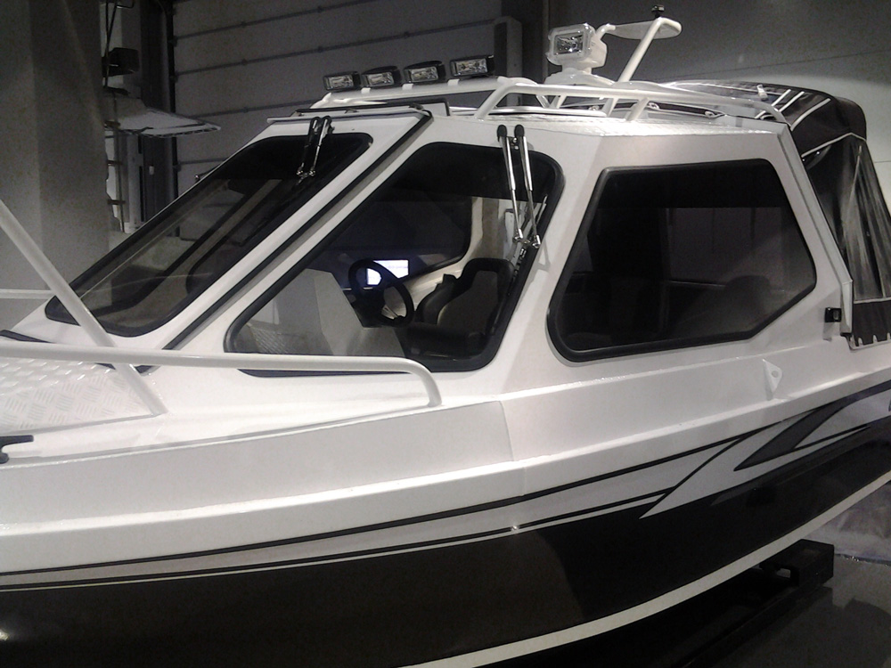 Кабина отлично подходит для северного климата, когда дожди могут застать врасплох. И если рыбаки привыкли к капризам погоды, то для беспечных туристов возможность укрыться в кабине весомое подспорье. Лодка достаточно легкая и потому чаще её перевозят к местам рыбалки или отдыха на трейлере, нежели ставят на стационарную стоянку. Хотя и в марине такой катер вполне уместен.
