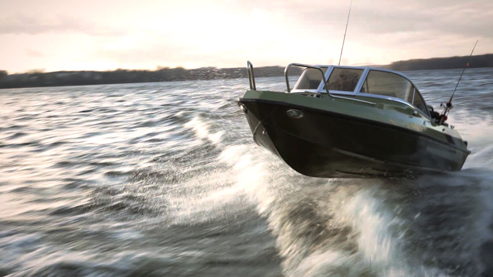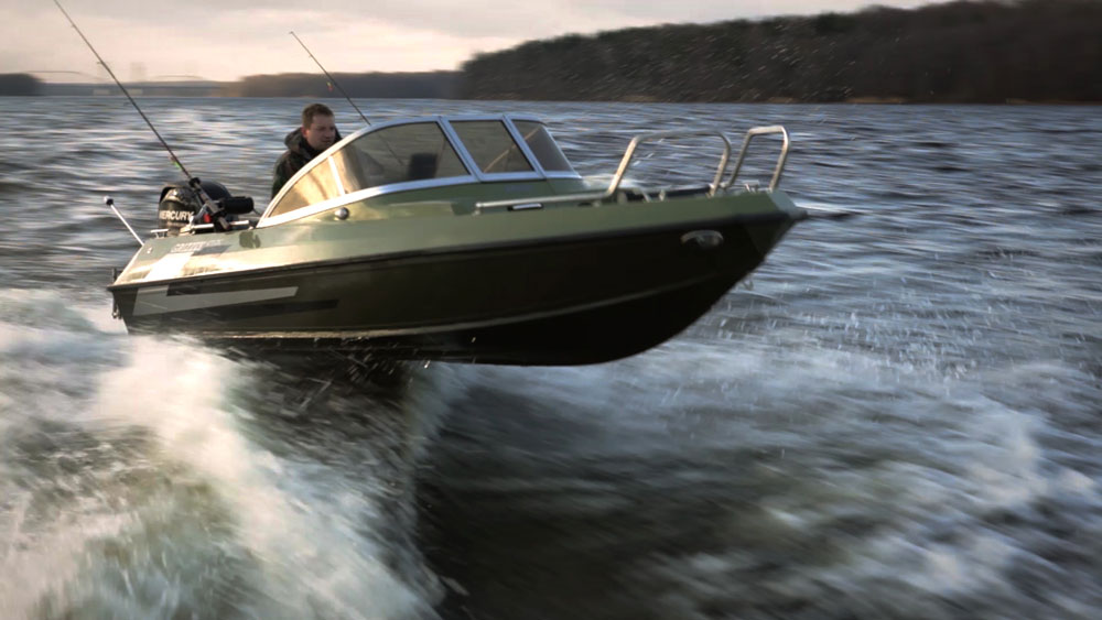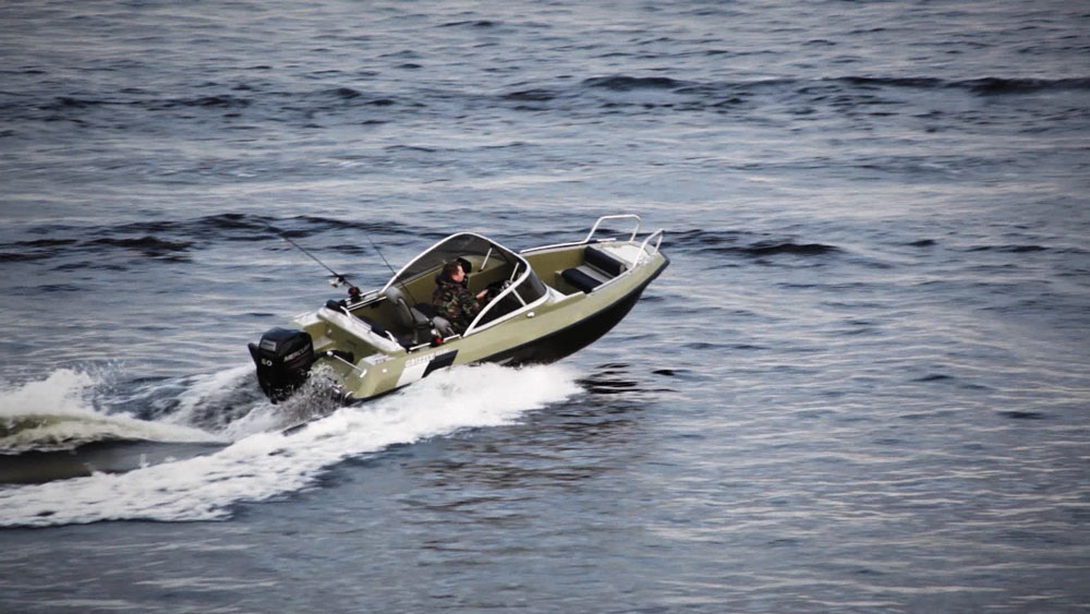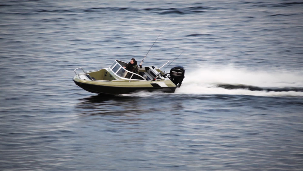 Динамичный катер, быстрый выход в режим глиссирования, устойчив на курсе, предсказуем без лишних кренов, легок в управлении. Маневренность необходимая при переходах в сложных условиях на уровне водометного катера.