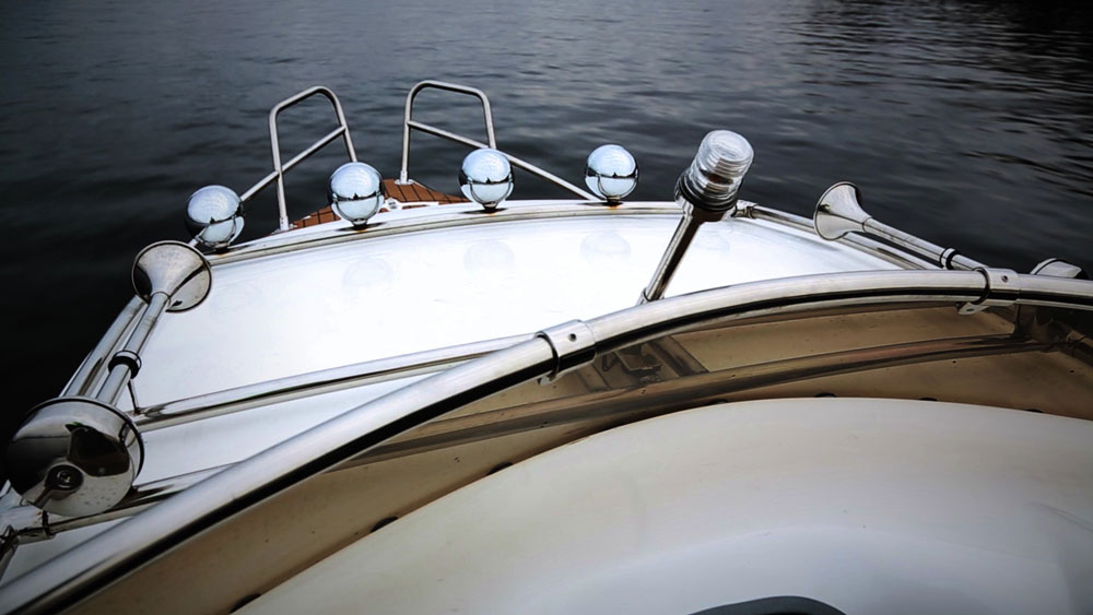- Носовые рейлинги из нержавеющей стали Ø 25 мм.