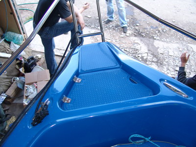 - Рулевое управление со штурвальным тросом под мотор до 200 л/с. Стационарный топливный бак 140 л.