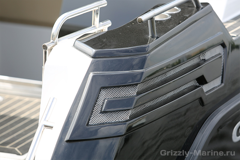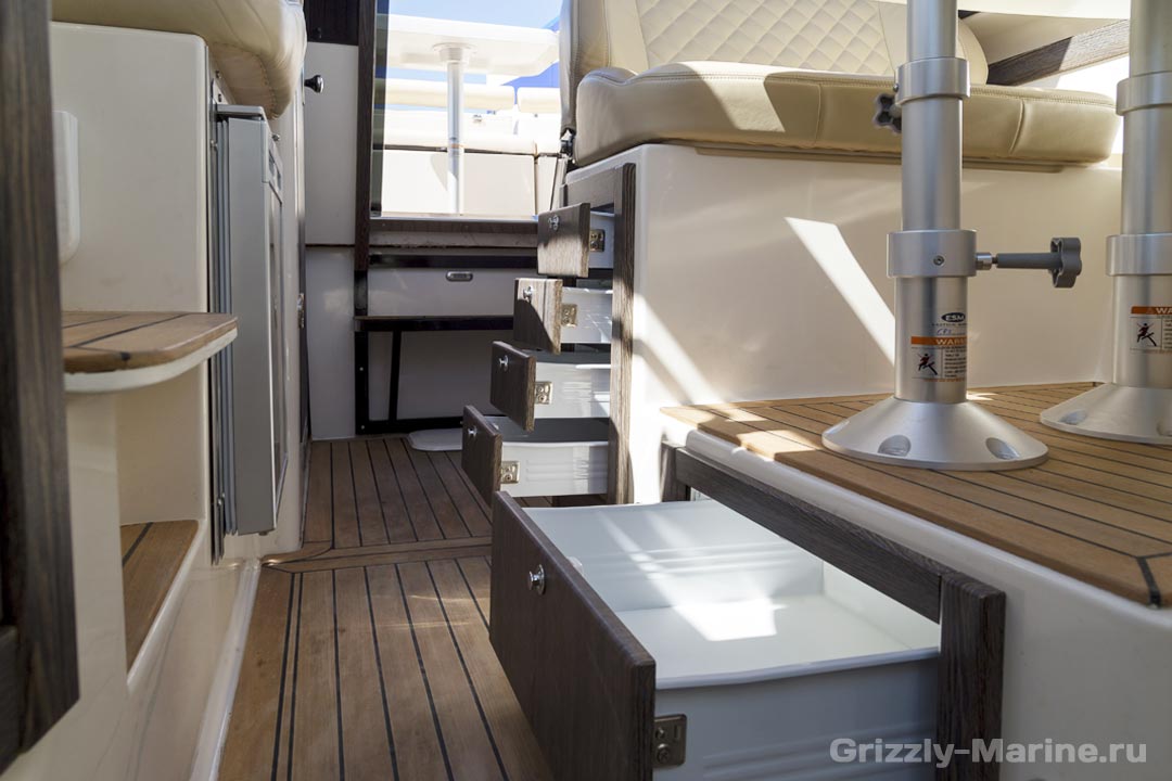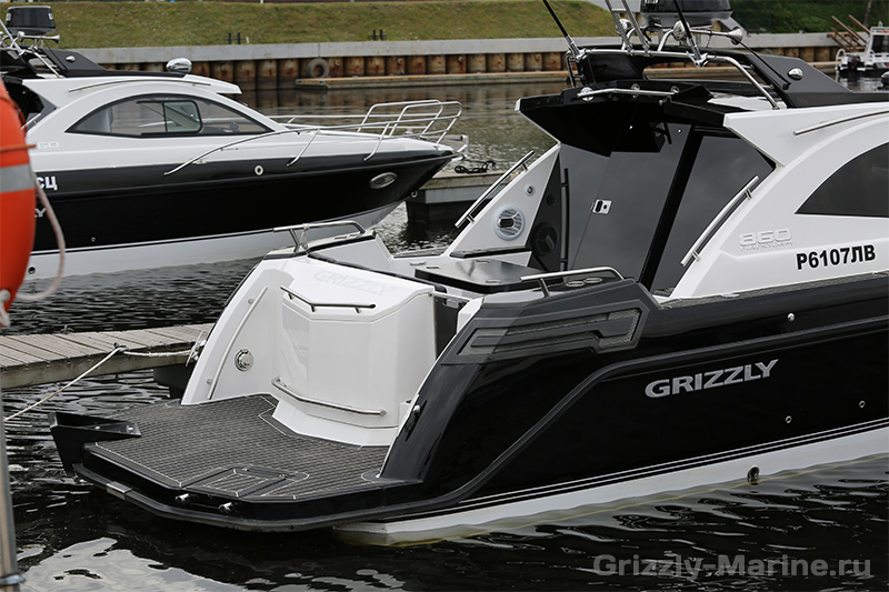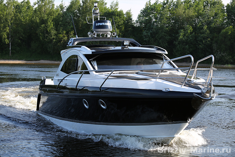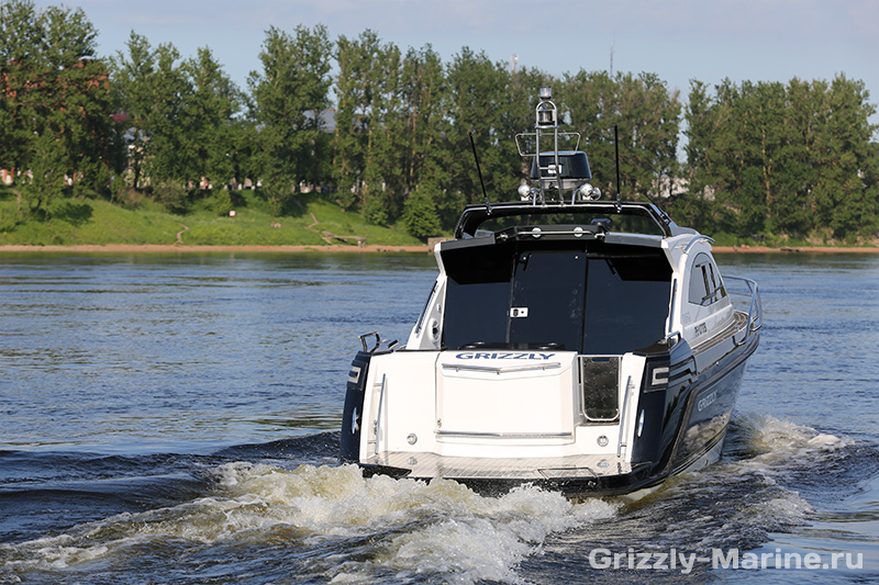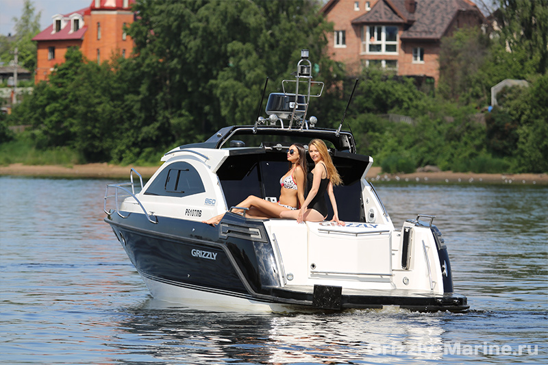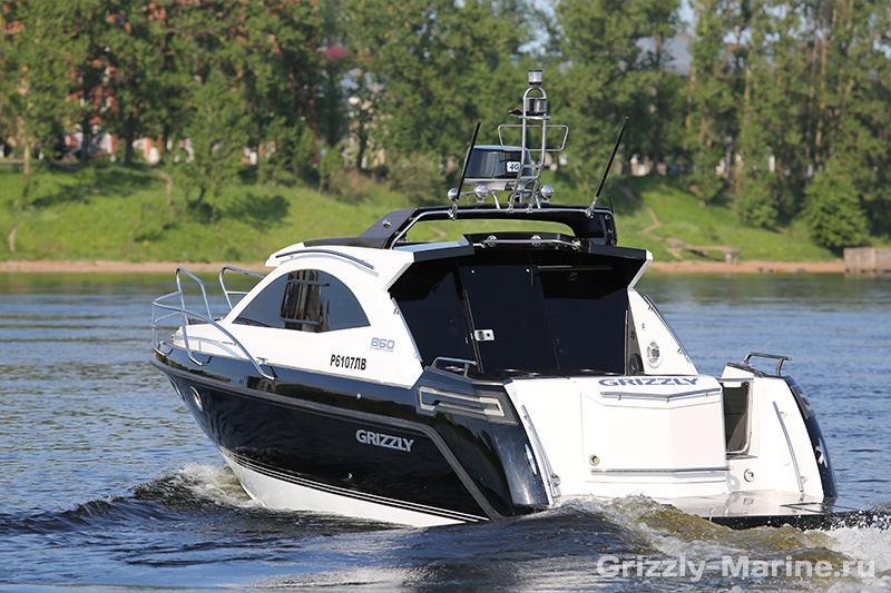 Самый большой в 800-ой серии катер Grizzly 860 Firestorm. Является одной из самых ярких моделей верфи, в концепции dayCruiser, т.е. лодка созданная для дневных путешествий с максимальным комфортом и набором опций.