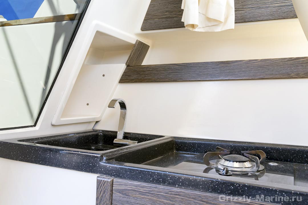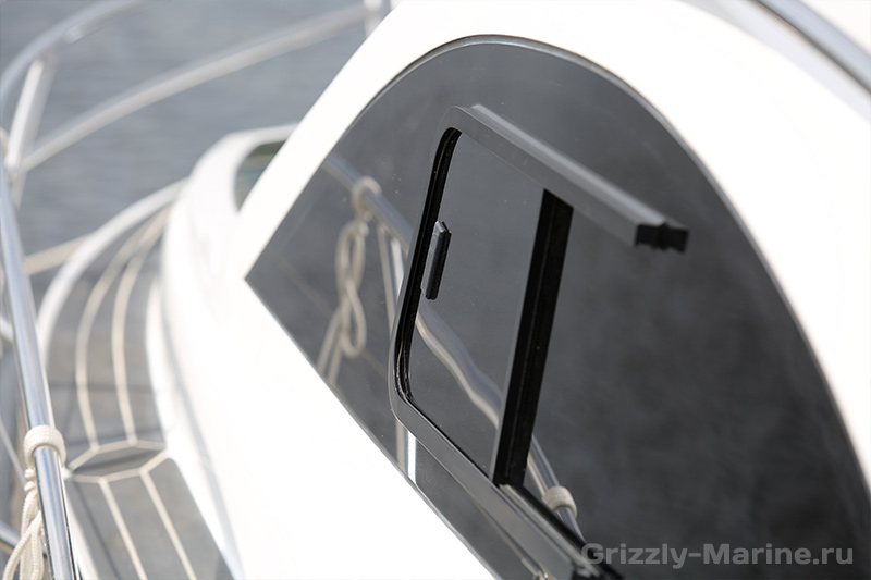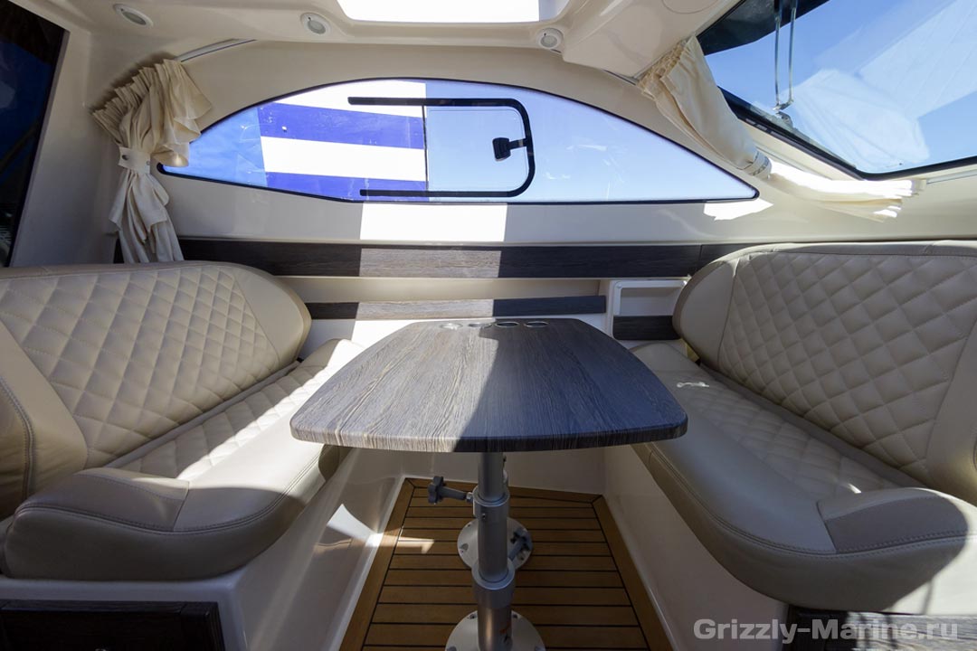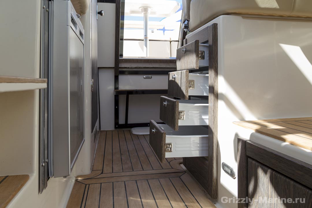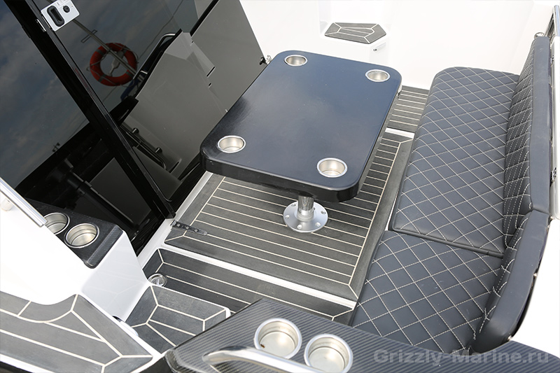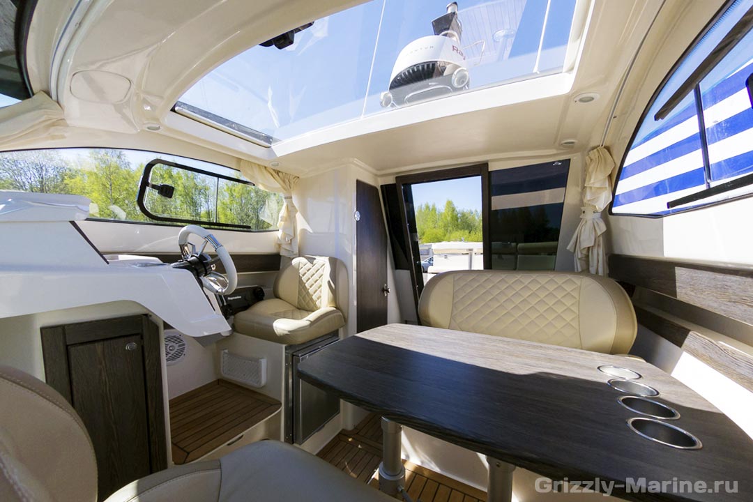 Самый большой в 800-ой серии катер Grizzly 860 Firestorm. Является одной из самых ярких моделей верфи, в концепции dayCruiser, т.е. лодка созданная для дневных путешествий с максимальным комфортом и набором опций.