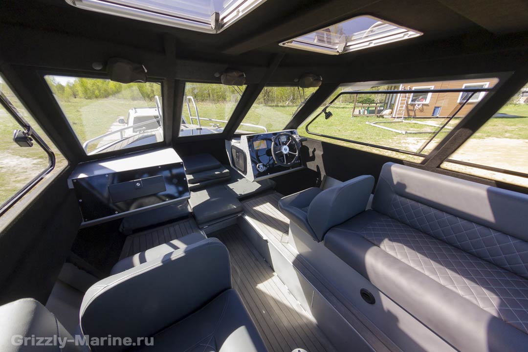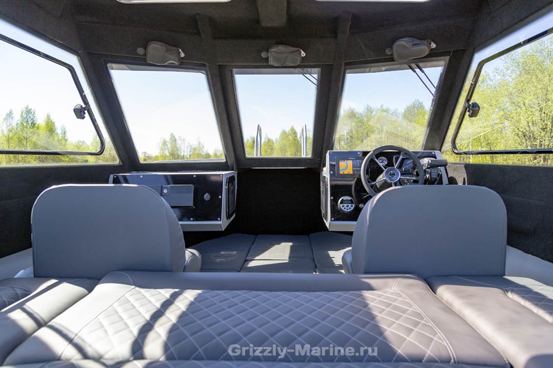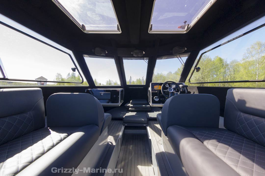 Панорамное остекление кабины выполнено из калёного стекла методом вклейки по автомобильной технологии. Что обеспечит максимальную обзорность и освещённость кабины. Сиденья капитана и штурмана имеют боковую поддержку и удобны при движении в разных режимах, дополнительно смягчая удары на высоких скоростях в условиях ощутимого волнения.