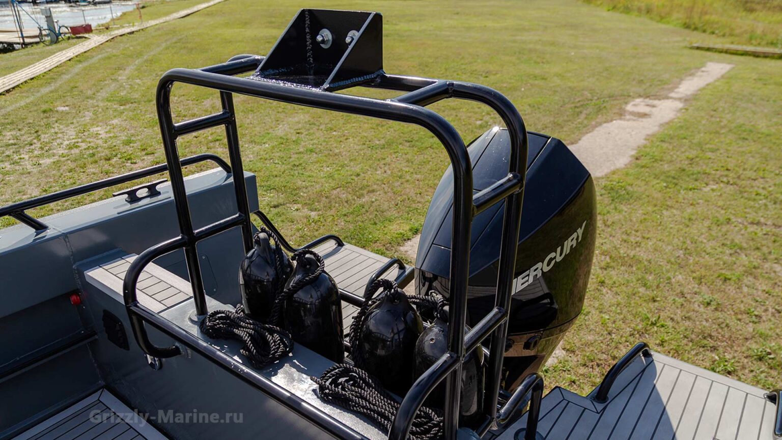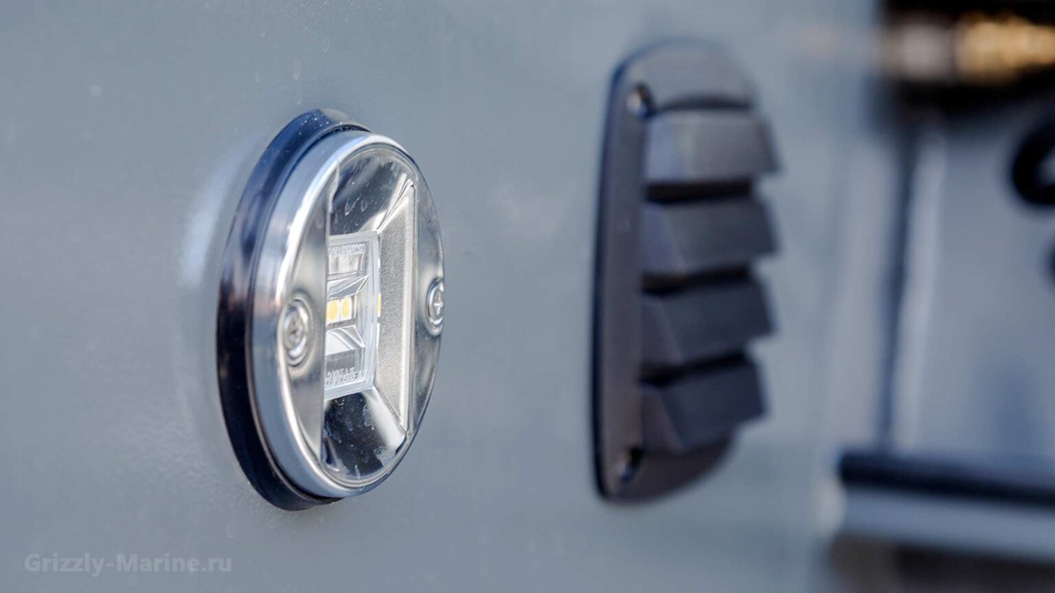 Особая деталь внешней части корпуса GRIZZLY G680 PRO DC конструкция привального бруса. Его внешняя часть покрыта особым материалом – Line-X. Он широко применим в тюнинге больших полноприводных автомобилей и крупных пикапов. Создавая особый стиль, но в первую очередь, обладая особыми конструктивными свойствами: повышенной устойчивости к истиранию и повреждению. Что и нашло применение в конструкции привального бруса, где это особенно ценно. Конструкция привального бруса благодаря большей толщине немного выступает за границы корпуса и выполняет функцию брызгоотбойника. Что так же является уникальным для катеров данного класса.