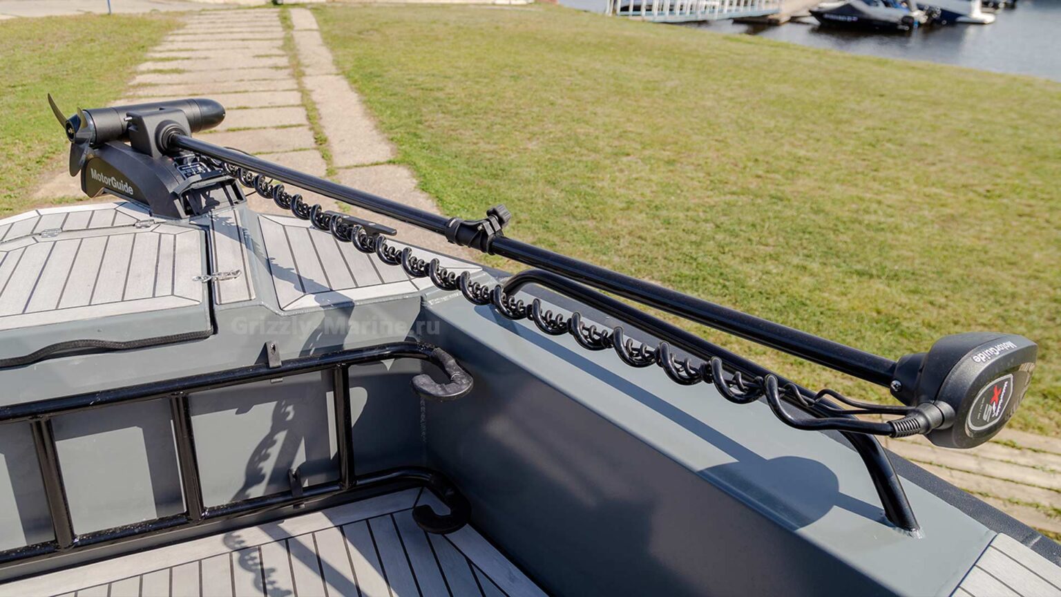 Благодаря тому, что якорная лебёдка установлена в специальный рундук, выходу в берег ничего не мешает. Более того, это пространство при необходимости можно использовать и для установки электродвигателя MotorGuide или MinnKota, данная опция популярна среди рыболовов, поскольку позволяет бесшумно перемещаться по акватории, не затрачивая топливо.