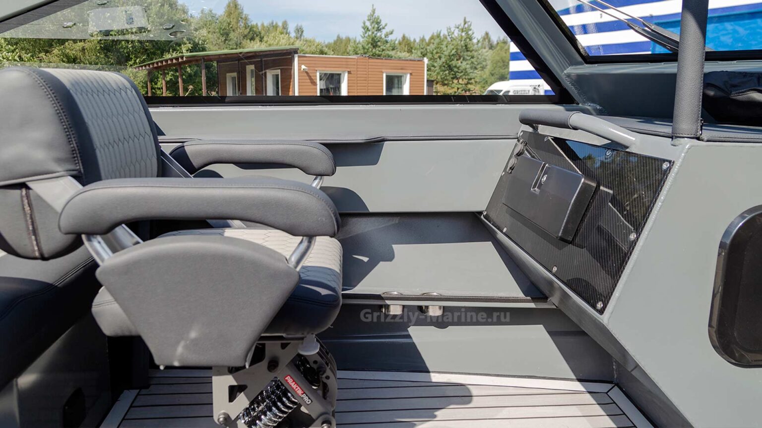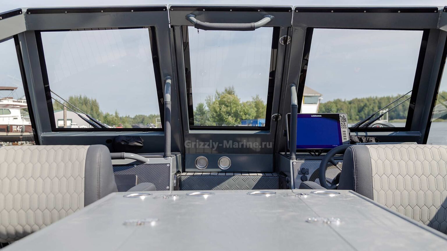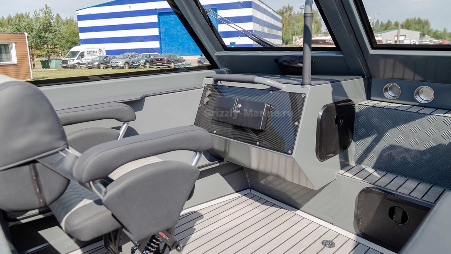 Панорамное остекление выполнено из калёного стекла методом вклейки по автомобильной технологии. Что обеспечит максимальную обзорность. Сиденья капитана и штурмана имеют боковую поддержку и удобны при движении в разных режимах, дополнительно смягчая удары на высоких скоростях в условиях ощутимого волнения.