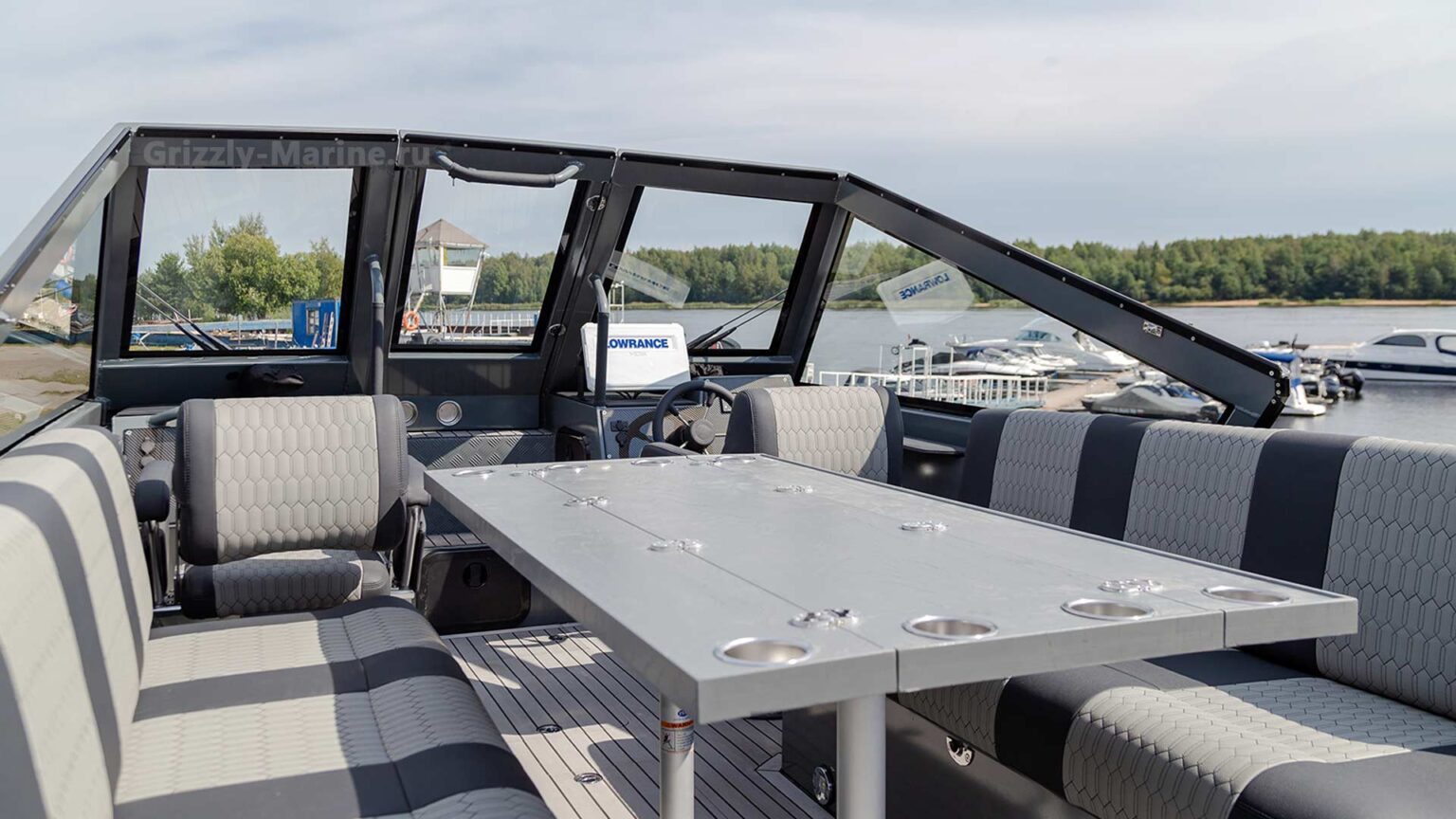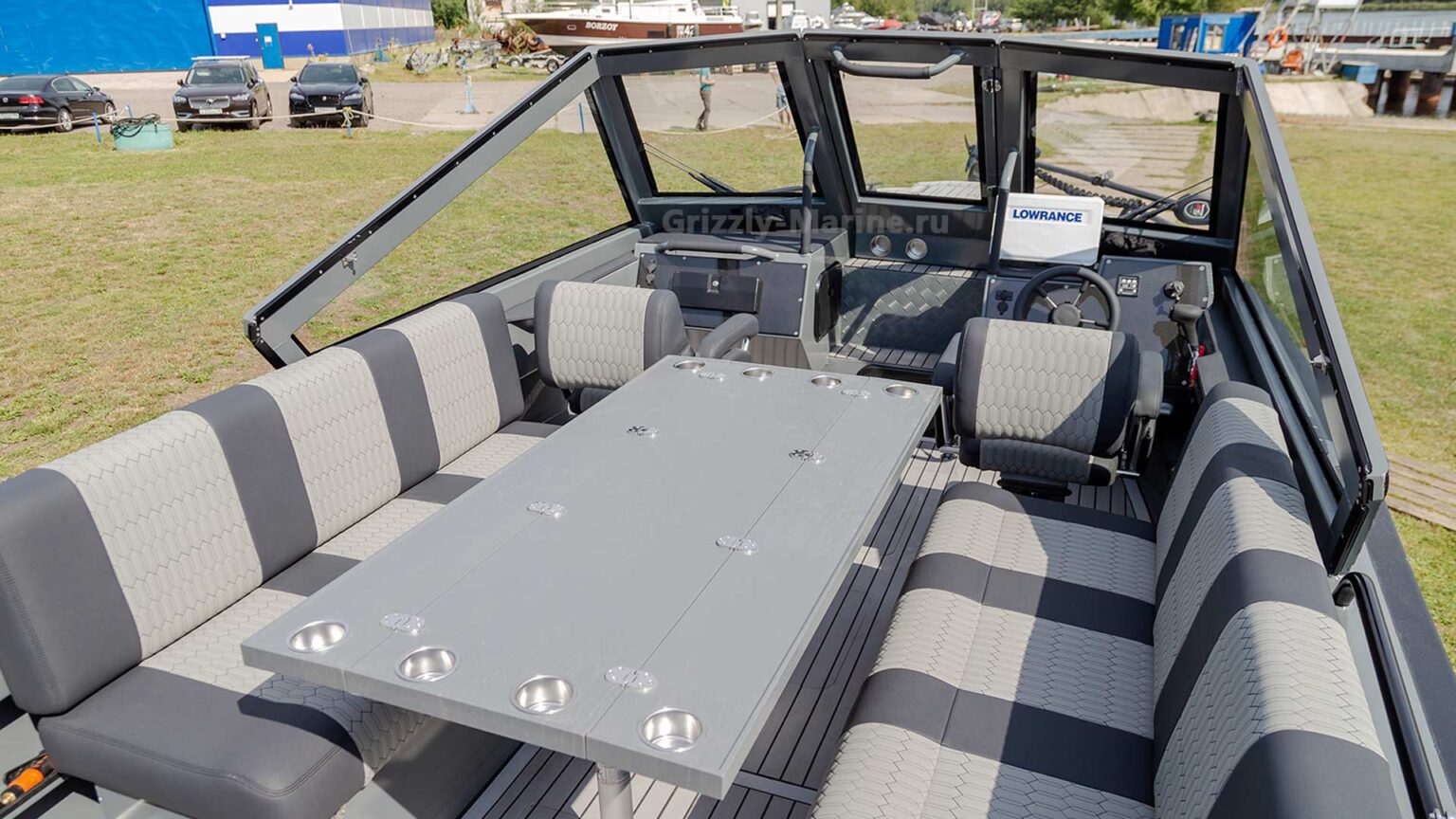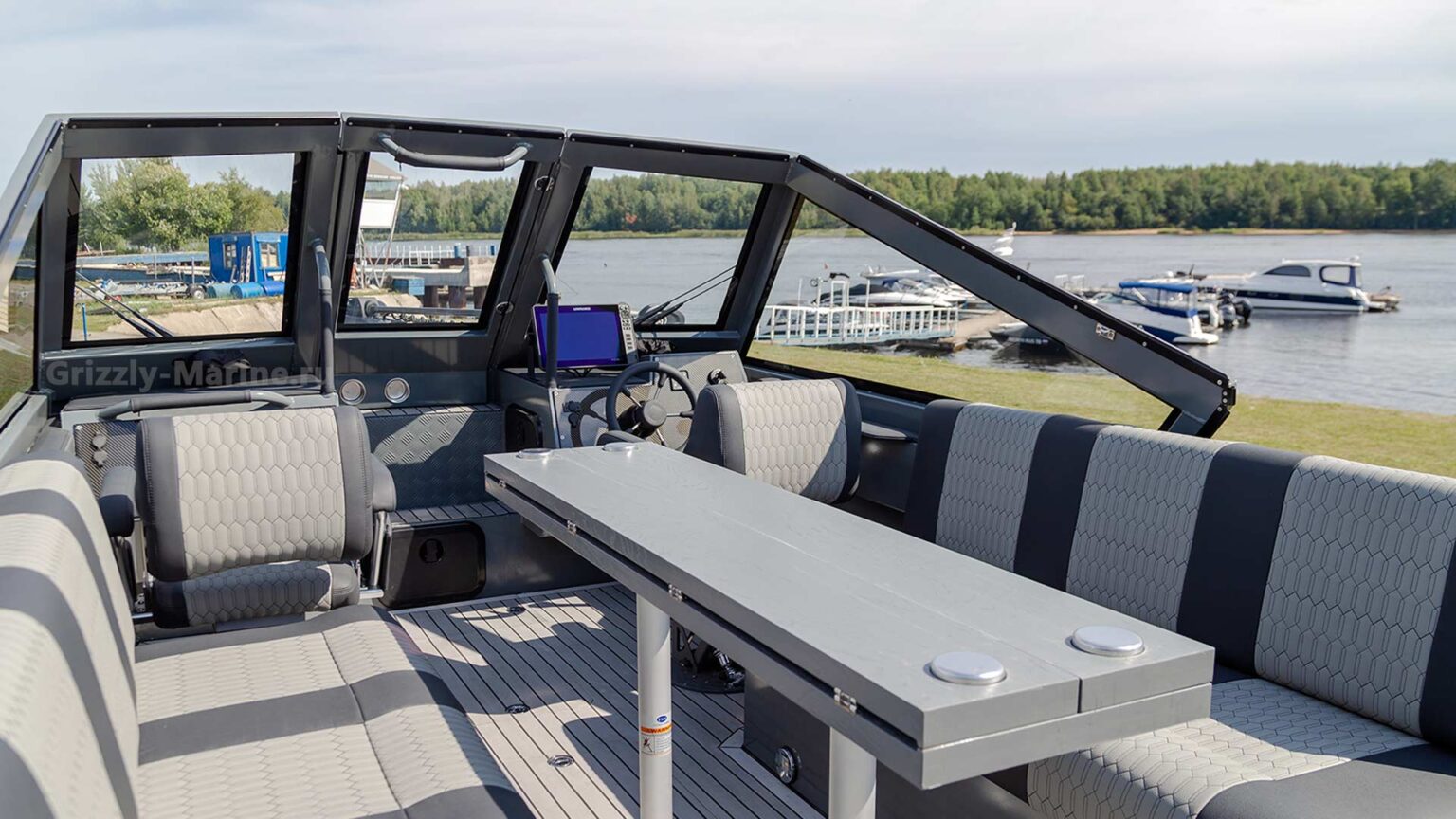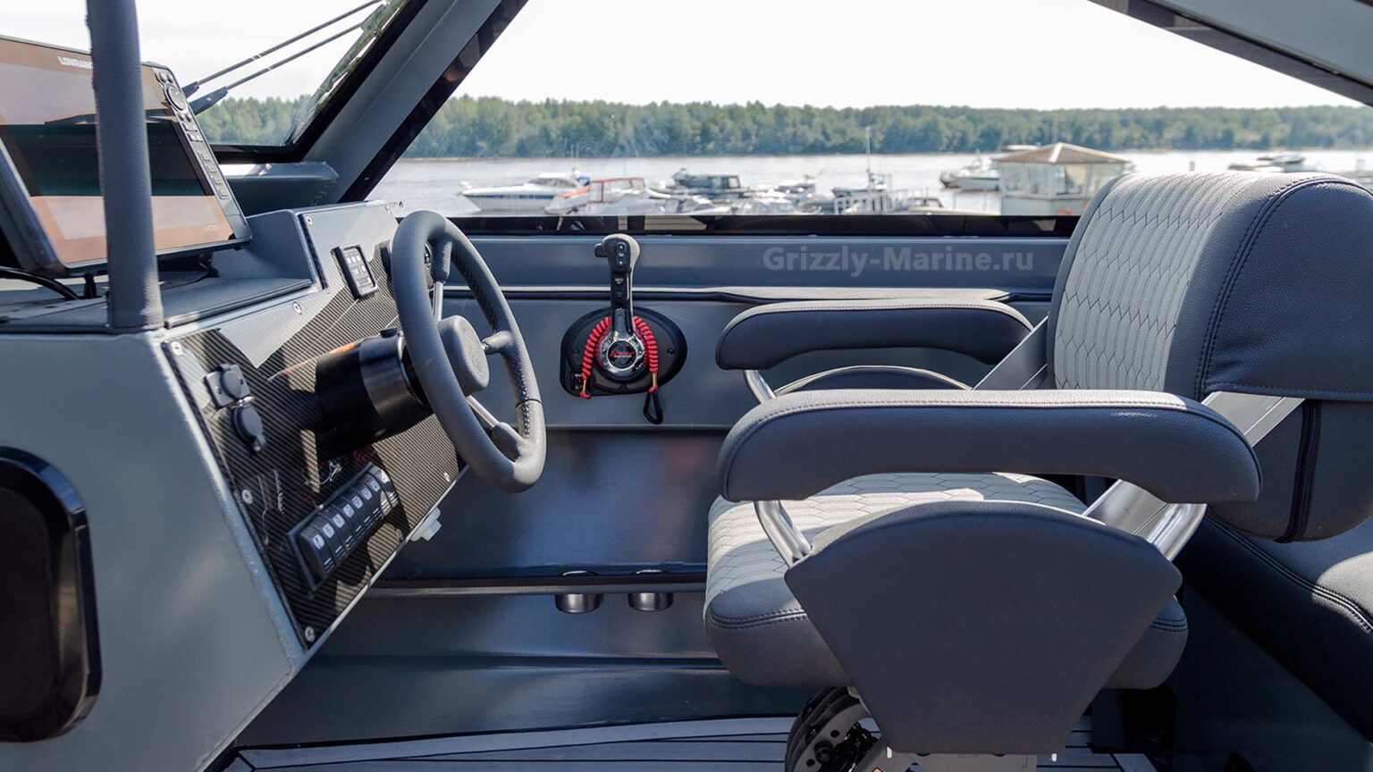 Панорамное остекление выполнено из калёного стекла методом вклейки по автомобильной технологии. Что обеспечит максимальную обзорность. Сиденья капитана и штурмана имеют боковую поддержку и удобны при движении в разных режимах, дополнительно смягчая удары на высоких скоростях в условиях ощутимого волнения.