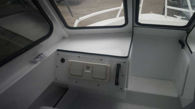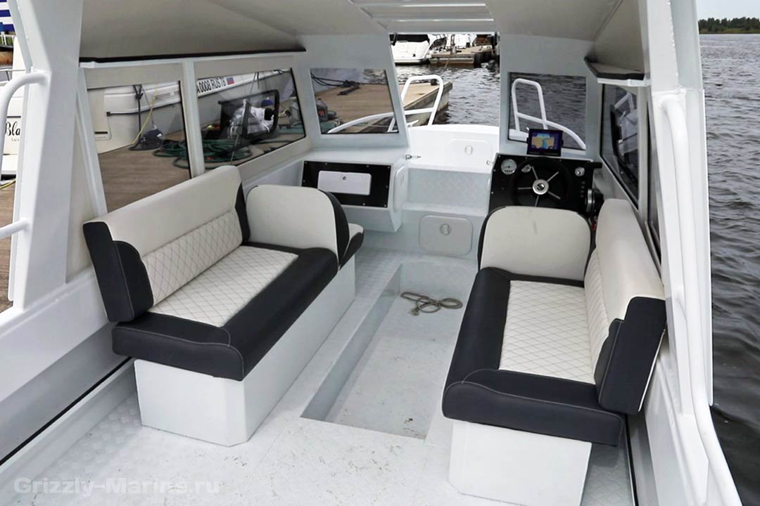 Модель для рыбалки выходного дня и семейных прогулок. Просторный задний кокпит, при желании полностью закрывается тентом. Не менее просторная кабина, с возможностью установки каютного обогревателя и путешествий в любых погодных условиях. Носовой кокпит облегчает выход на берег при «швартовке носом», и позволяет комфортно ловить рыбу. Этот катер относиться к категории многофункциональных, и обеспечивает комфортные условия в разных ситуациях, будь то путешествия среди островов, рыбалка вдали от берега, водные прогулки среди набережных больших городов.